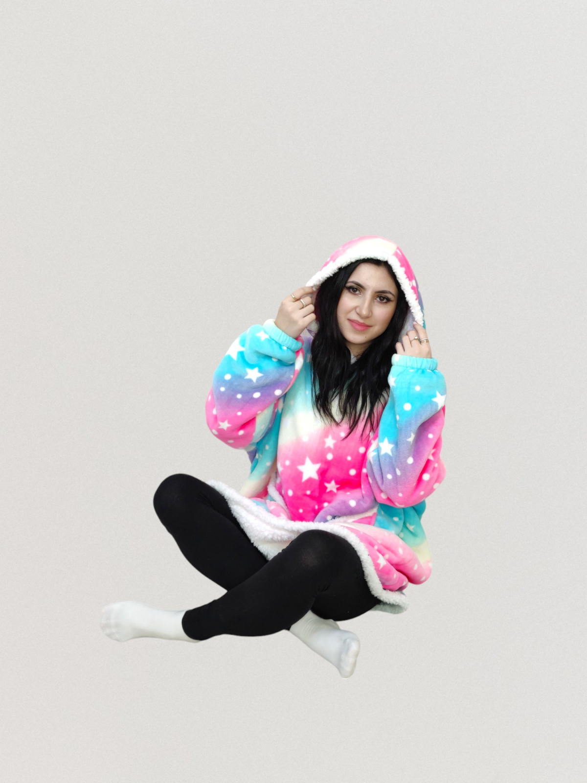 Design-ul vibrant, presarat cu stele si degradeuri colorate, transforma acest hanorac nu doar intr-un articol de imbracaminte, ci intr-un accesoriu de care te vei indragosti. Ideala pentru a aduce un zambet pe buze oriunde ai merge, Hanoracul Veselia este piesa de rezistenta pentru oricine iubeste sa combine confortul cu un stil de viata jovial.